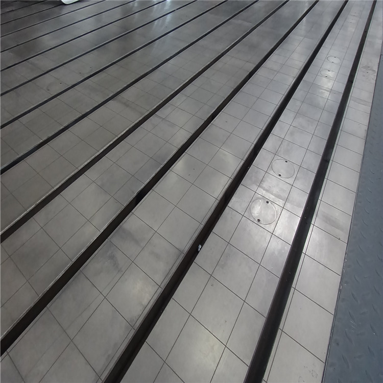 铆焊平台是指工业生产中铆焊工艺时的工作台.铆焊平板的表面有孔和T型槽.用来固定工件和清理铆焊加工时产生的铁屑.铆焊平板一般制成筋板式和箱体式.工作面有长方形.正方形或圆形.工作面采用刮削工艺.铆焊平板工作面上可加工V形.T形.U形槽和圆孔.长孔等多种形状工件.是机械制造中是的基础平台.铆焊平板(铆焊平台)材质使用铸铁HT-.工作面硬度为HB-.经过两次人工退火度-度和自然时效-年.使铆焊平板的精度稳定.能好.