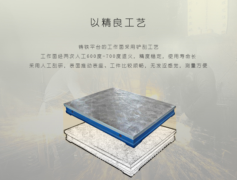 1、铸铁划线平台工件调平、刮研、检验科检验。